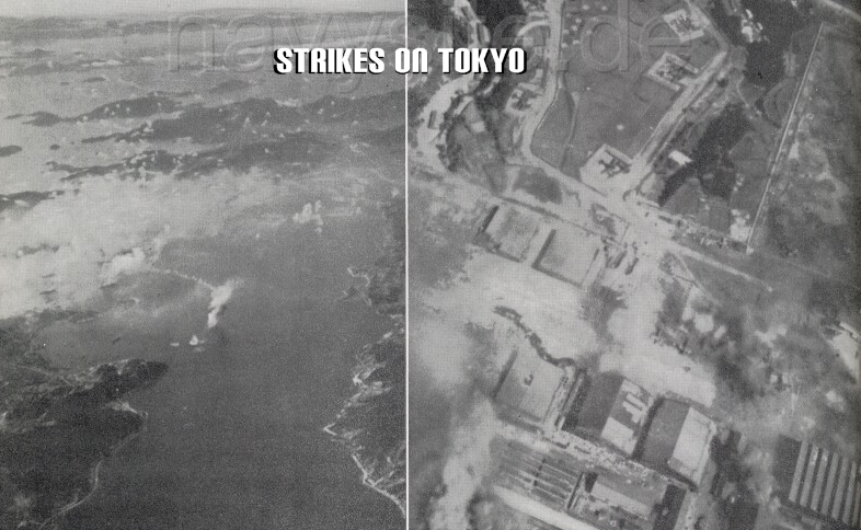 Participated in air strikes against targets on Tokyo and Hachijo Jima.