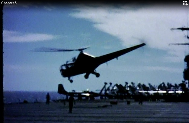 USS Lake Champlain’s helicopter crashes and the crew is recovered by a lelicopter from the USS Boxer (CVA-21).
