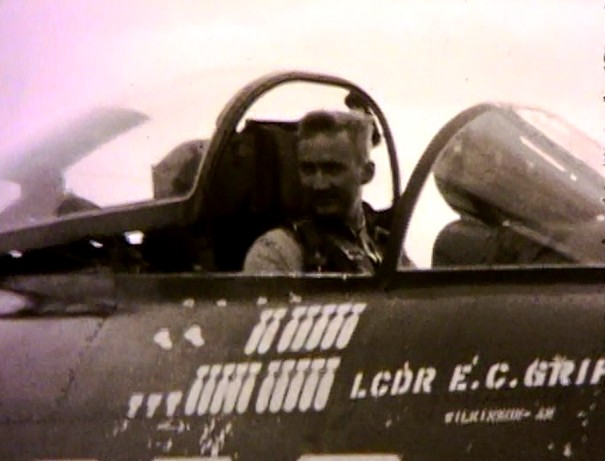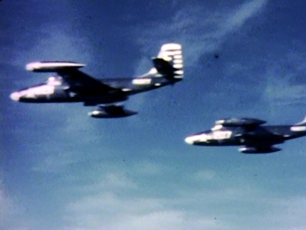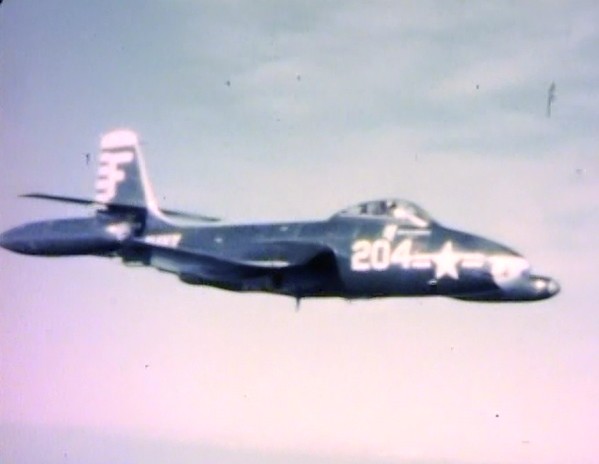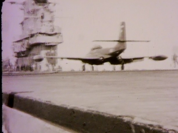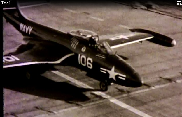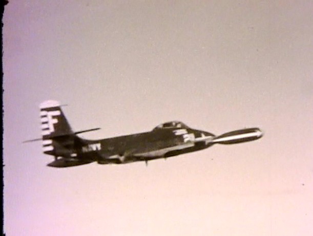 LT D.C. Joines, assigned to VF-62 ditches his F2H-2 Banshee over water and is rescued by USS Bremerton (CA 130)